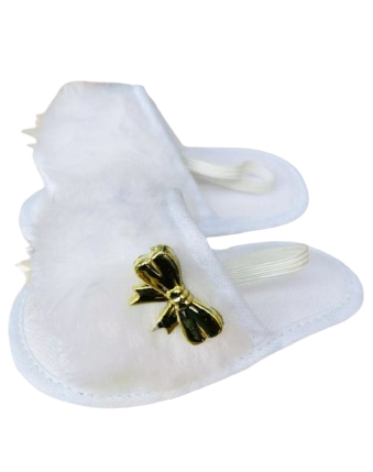 - Pantufa com pelinho na parte da frente e elástico na parte de trás
