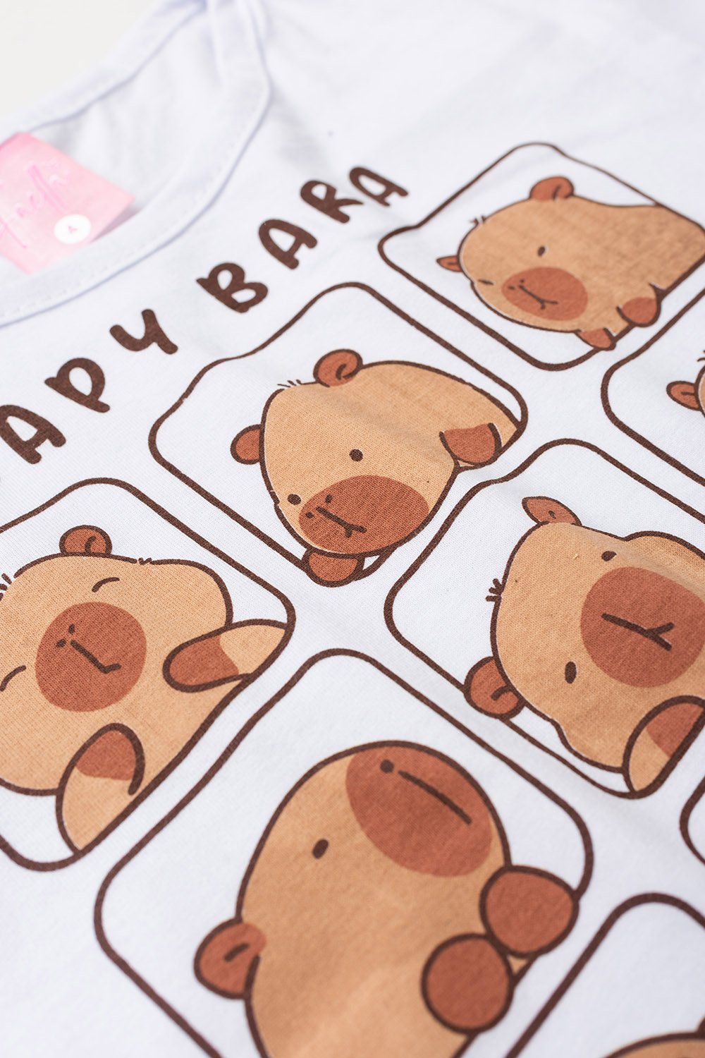 Conjunto Cropped Infantil Verão Feminino Capy Bara - Branco