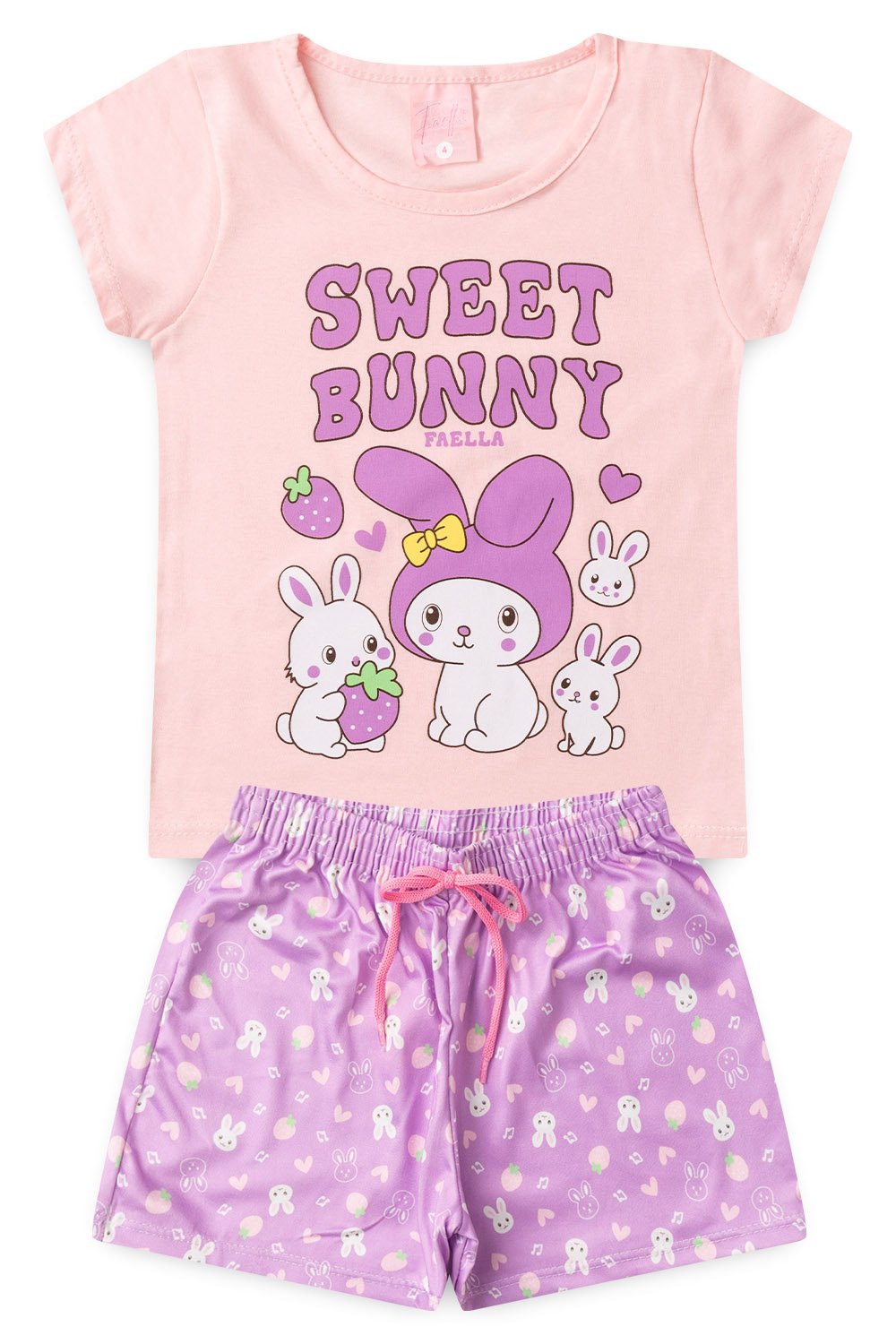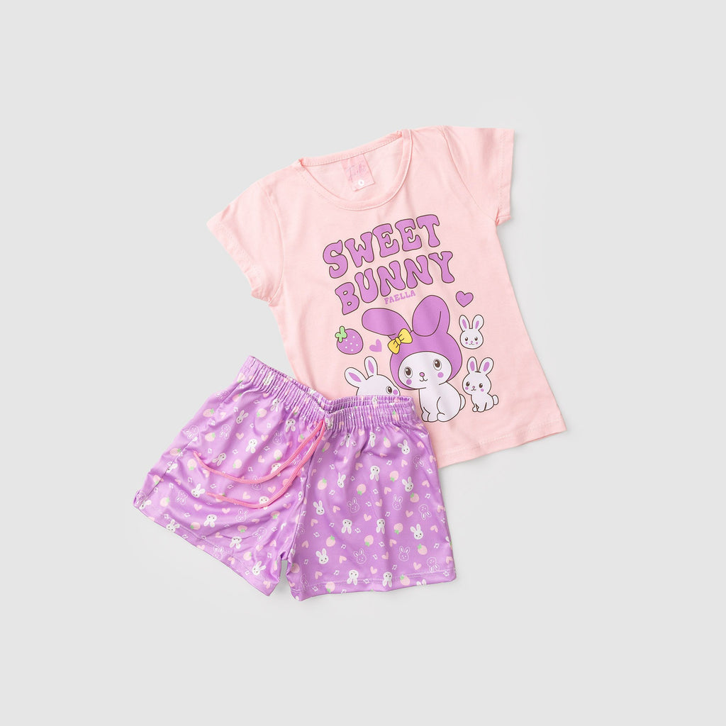 Conjunto Infantil Verão Feminino Sweet Bunny - Rosa