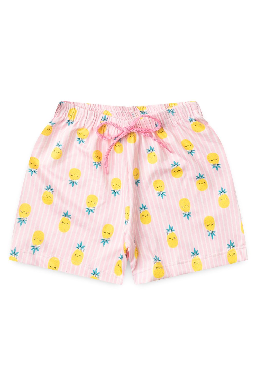 Shorts em Suplex estampado, elástico no cós e cordão decorativo.