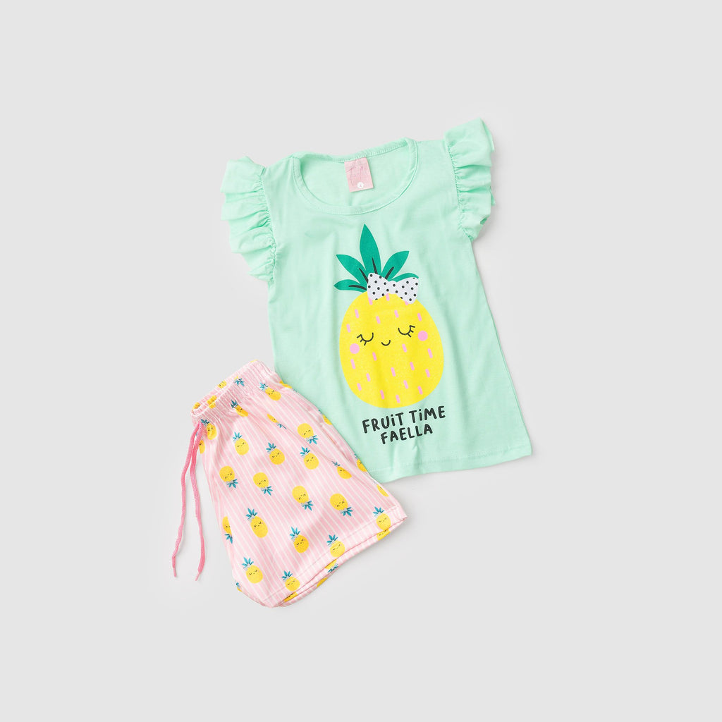 Conjunto Infantil Verão Feminino Fruit time - Verde