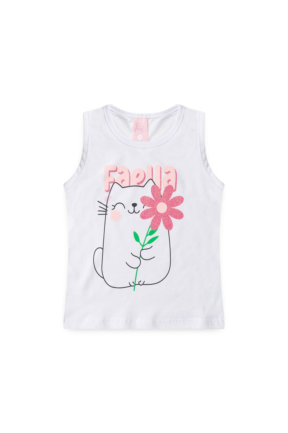 Conjunto Infantil Verão Feminino Regata Gatinha faella - Branco