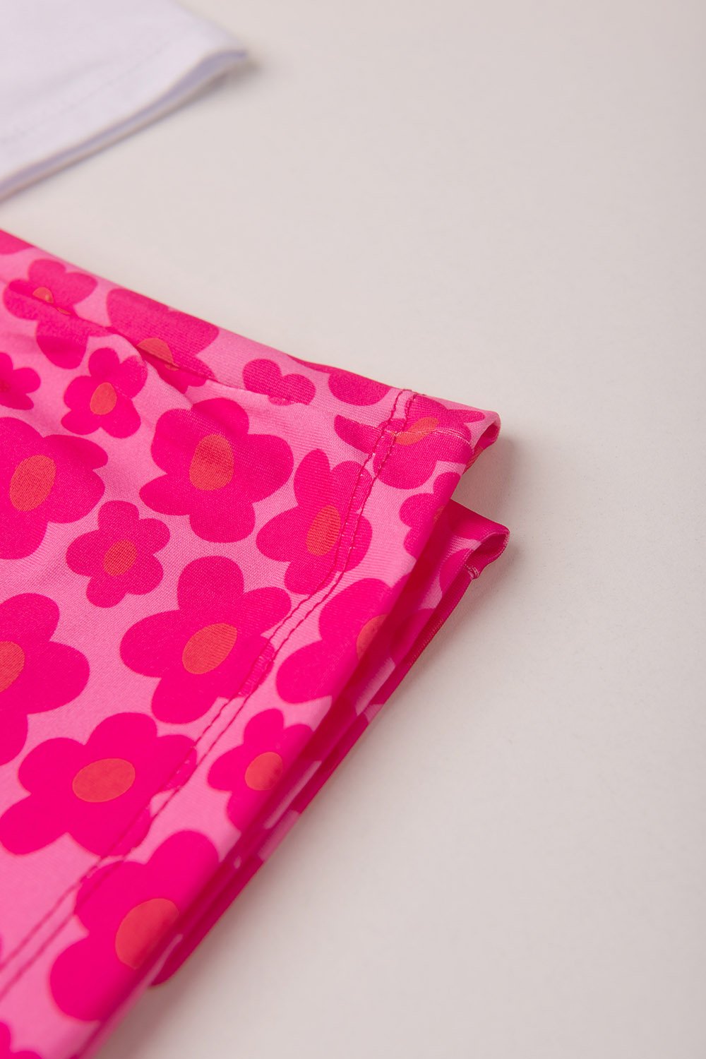 Pantalona em suplex estampada em flores, elástico no cós e amarração.