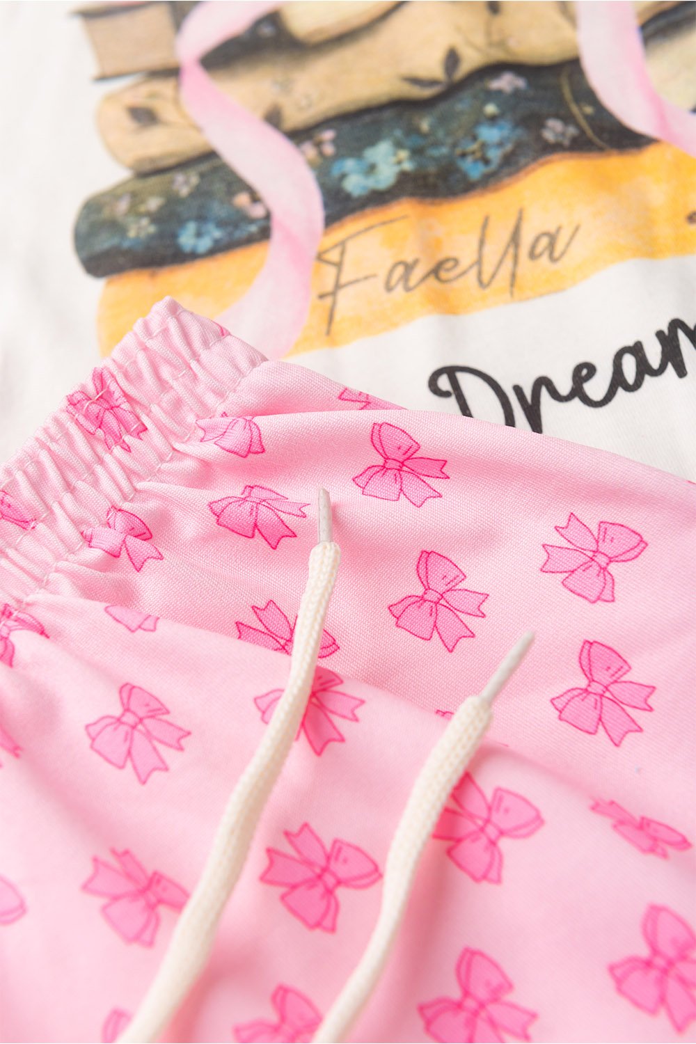 Shorts em Suplex estampado, elástico no cós e cordão decorativo.