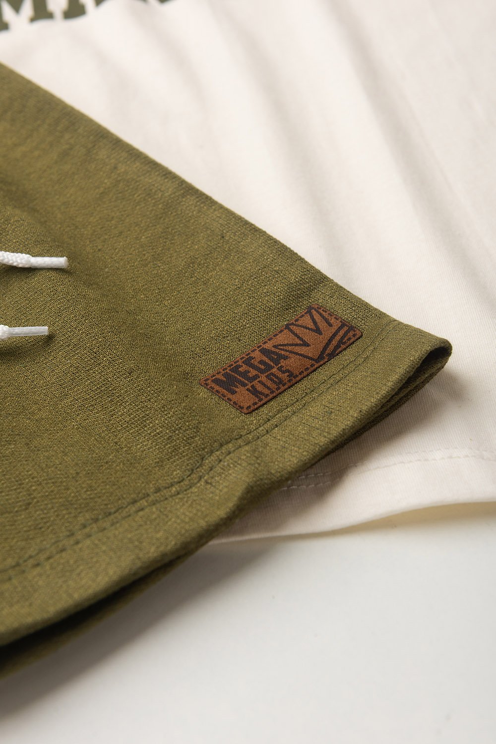 A camiseta, confeccionada em meia malha de alta qualidade na cor mostarda, destaca-se pela estampa de linhas e pela gola redonda, proporcionando um visual super estiloso. A bermuda, feita em moletinho preto, possui elástico no cós e aplique de cordão, garantindo ajuste perfeito e liberdade de movimento. Ambas as peças são compostas por, no mínimo, 100% algodão na camiseta e 85% algodão na bermuda, assegurando suavidade e respirabilidade para a pele sensível das crianças.