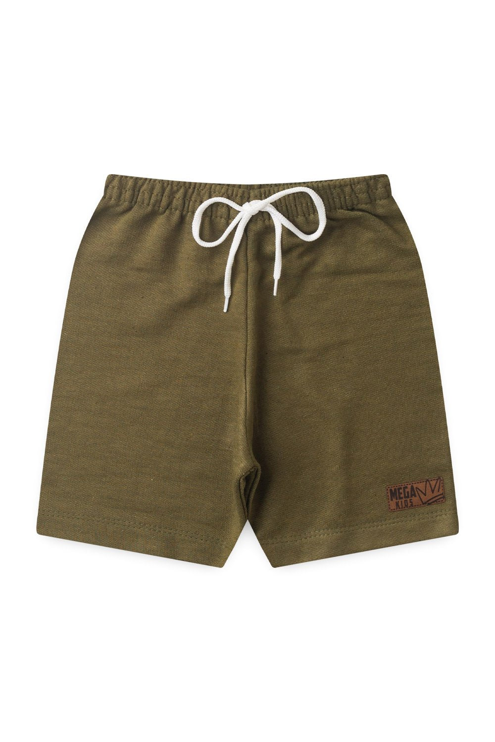 Bermuda em Moletinho na cor verde musgo, possui elástico no cós e aplique de cordão.