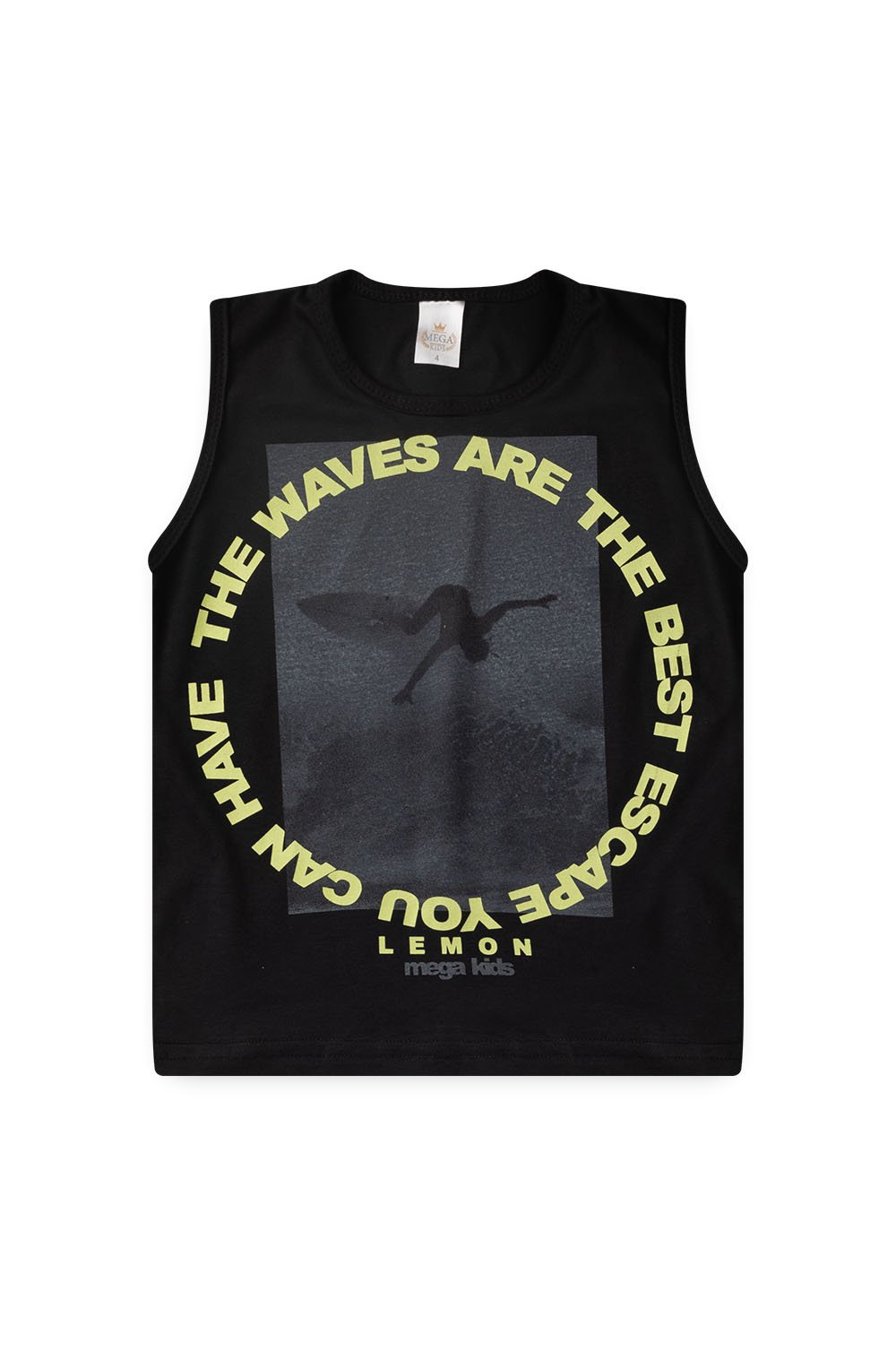Conjunto Infantil Verão Masculino Regata Surfando - Preto