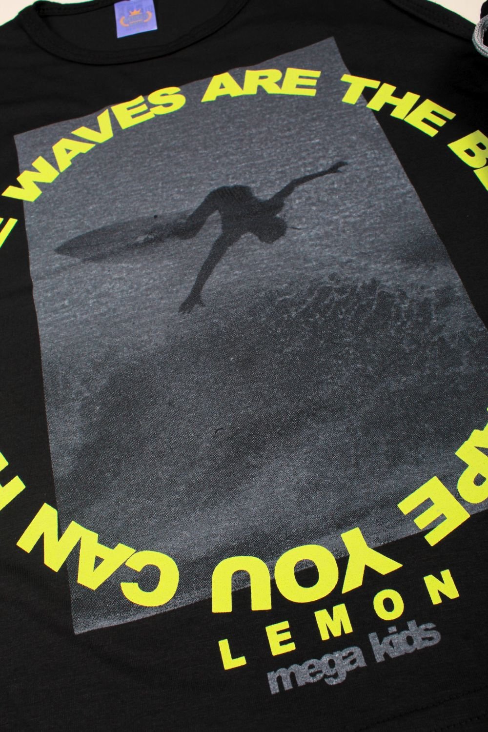 Regata em meia malha na cor preta com estampa frontal surfando na onda, possui gola redonda, super estilosa.