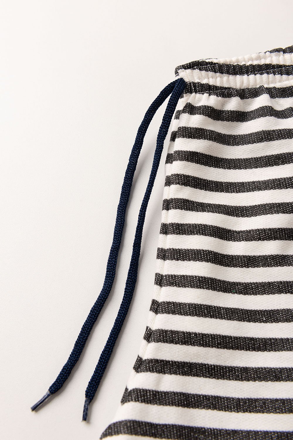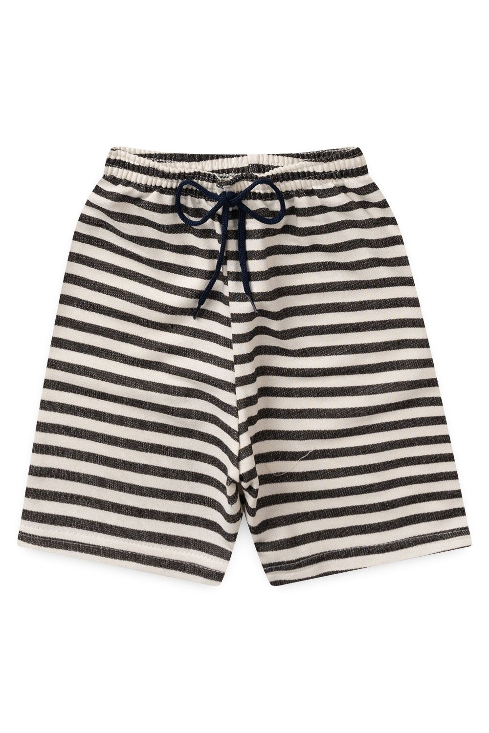 Shorts em Moletinho subliomado em listras, possui elástico no cós e aplique de cordão.