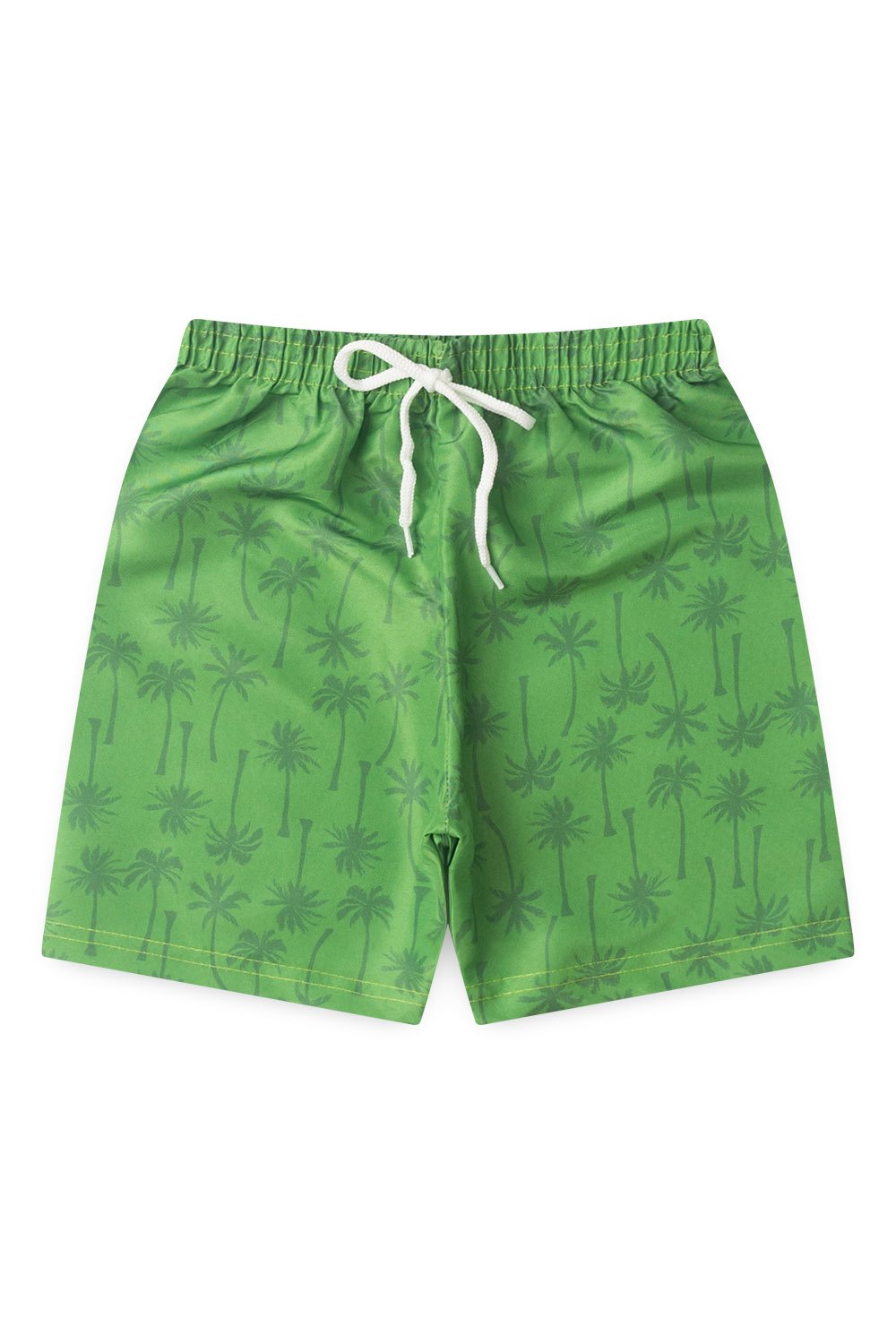Bermuda em tactel estampado, possui elástico no cós e aplique de cordão.