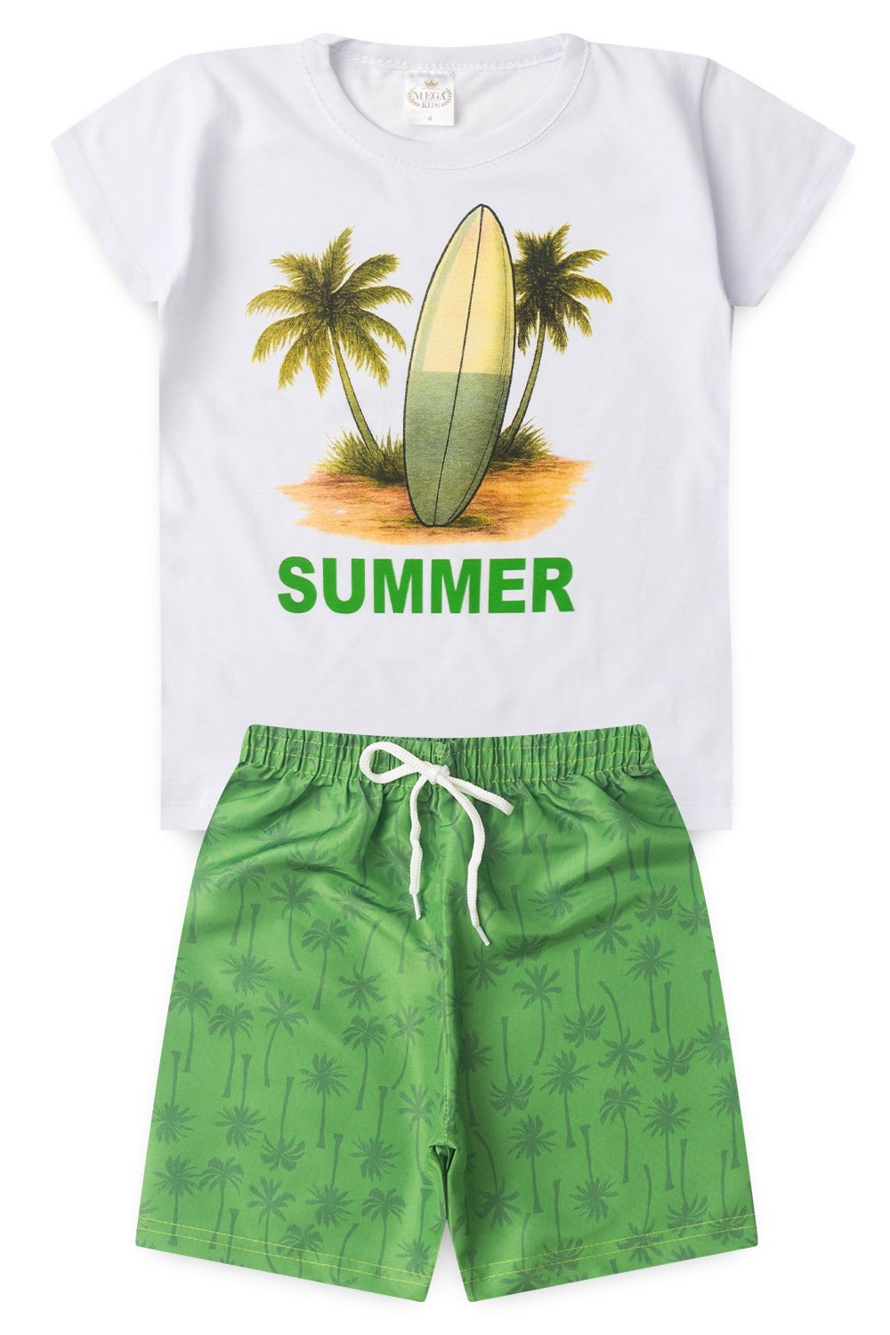 Conjunto Infantil Verão Masculino Camiseta Prancha Summer - Branco