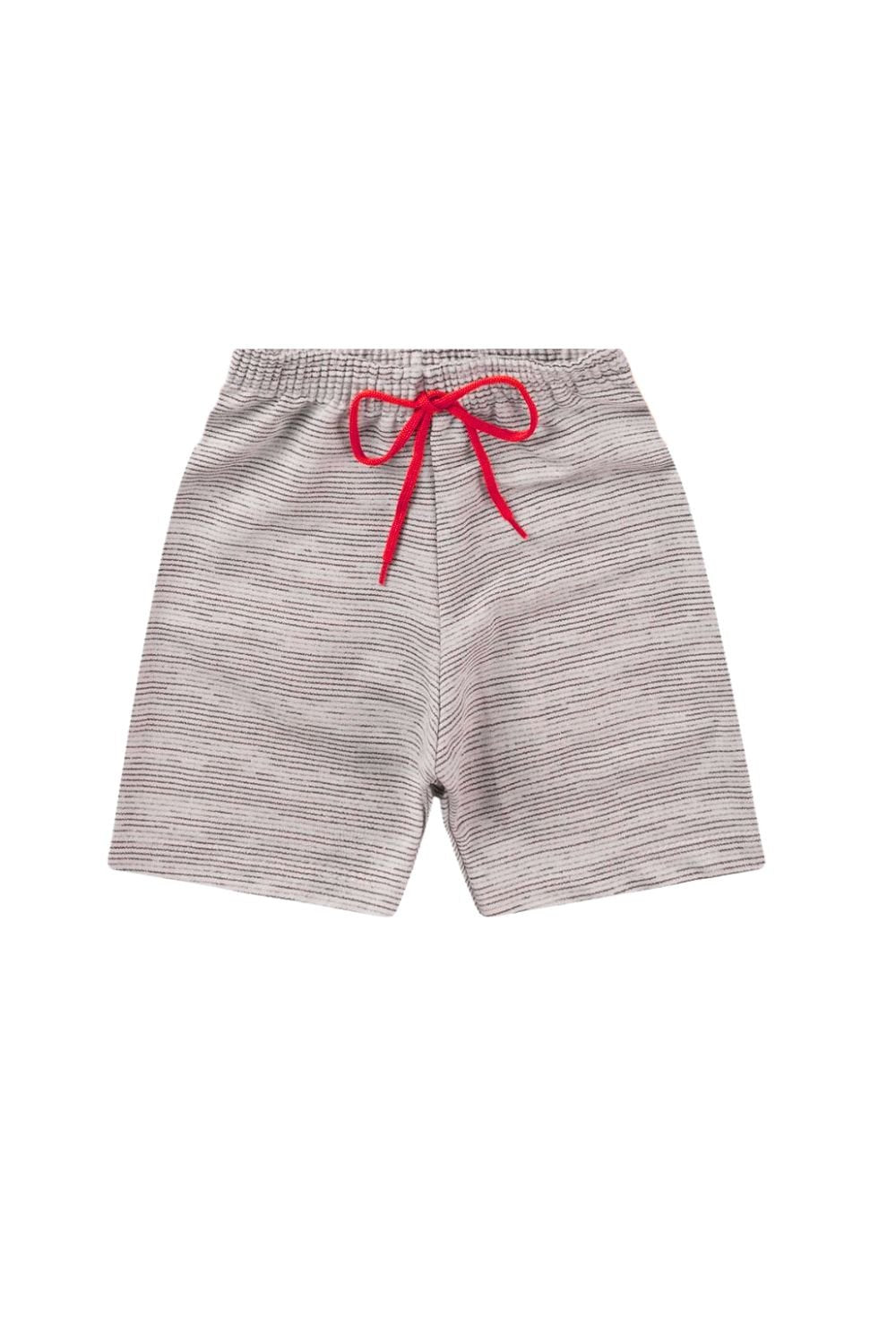 Bermuda em Moletinho rajado, possui elástico no cós e aplique de cordão.