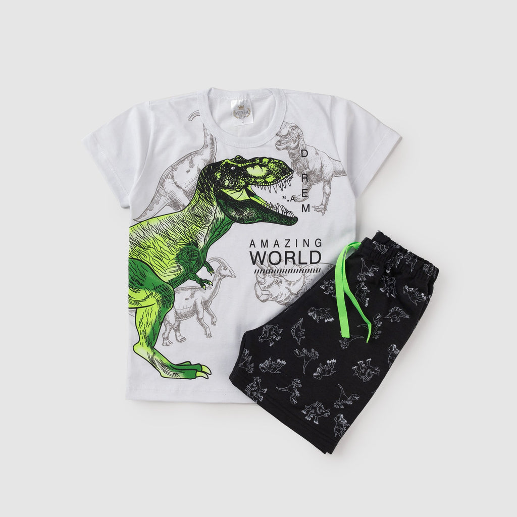 Conjunto Infantil Verão Masculino Dinossauros - Branco