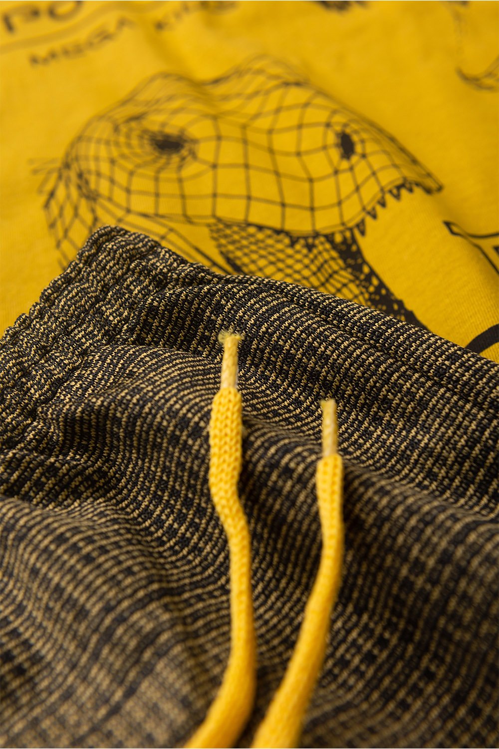 Conjunto Infantil Verão Masculino Regata Com Capuz Dino - Mostarda