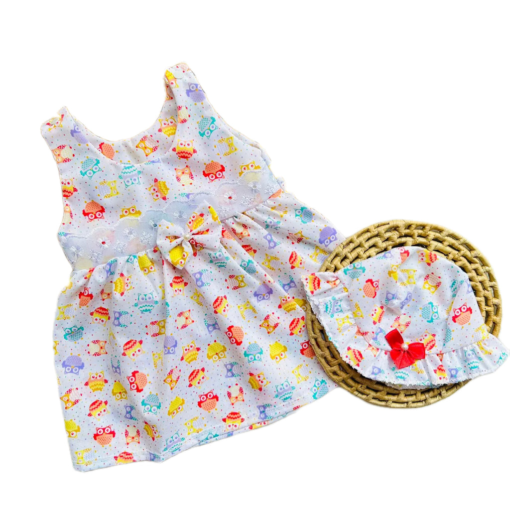 Vestido de bebê super leve e confortável, acompanha chapéu combinando para deixar o look ainda mais completo e estiloso. Ideal para passeios, fotos e dias quentes!