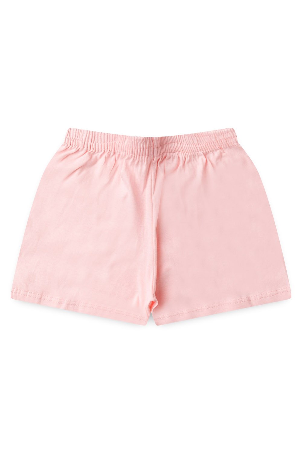 shorts em meia malha na cor rosa, possui elástico no cós e aplique de cordão.