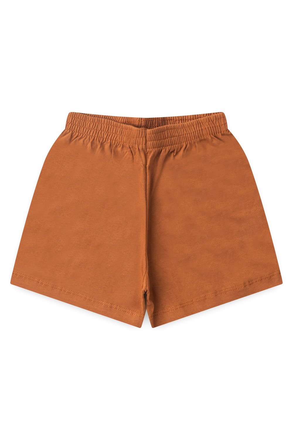 shorts em meia malha na cor caramelo, possui elástico no cós.