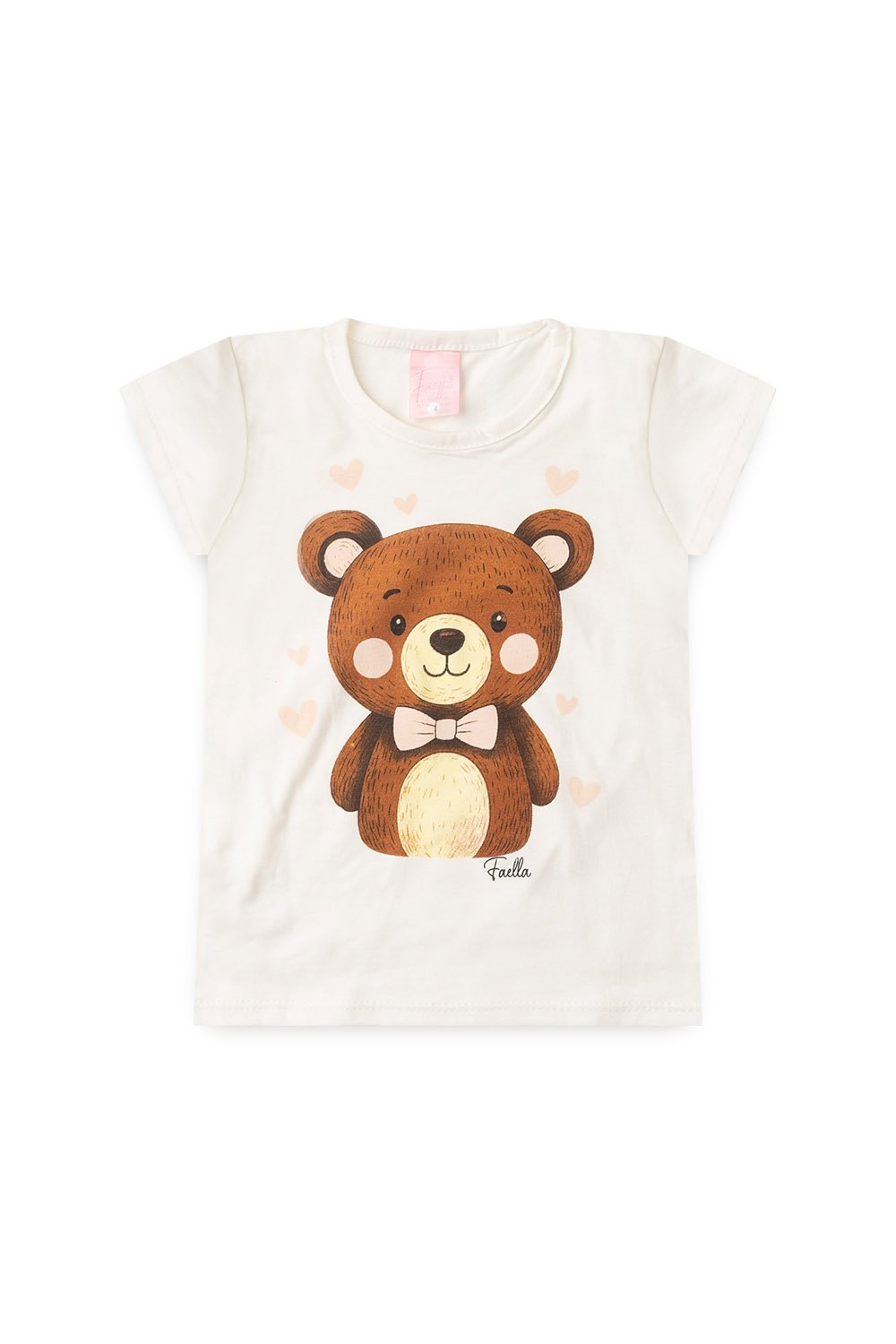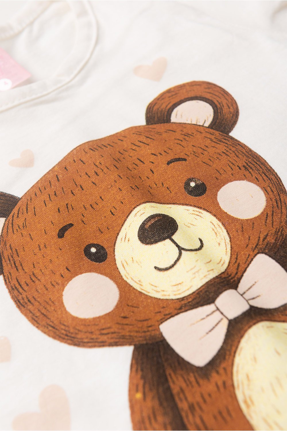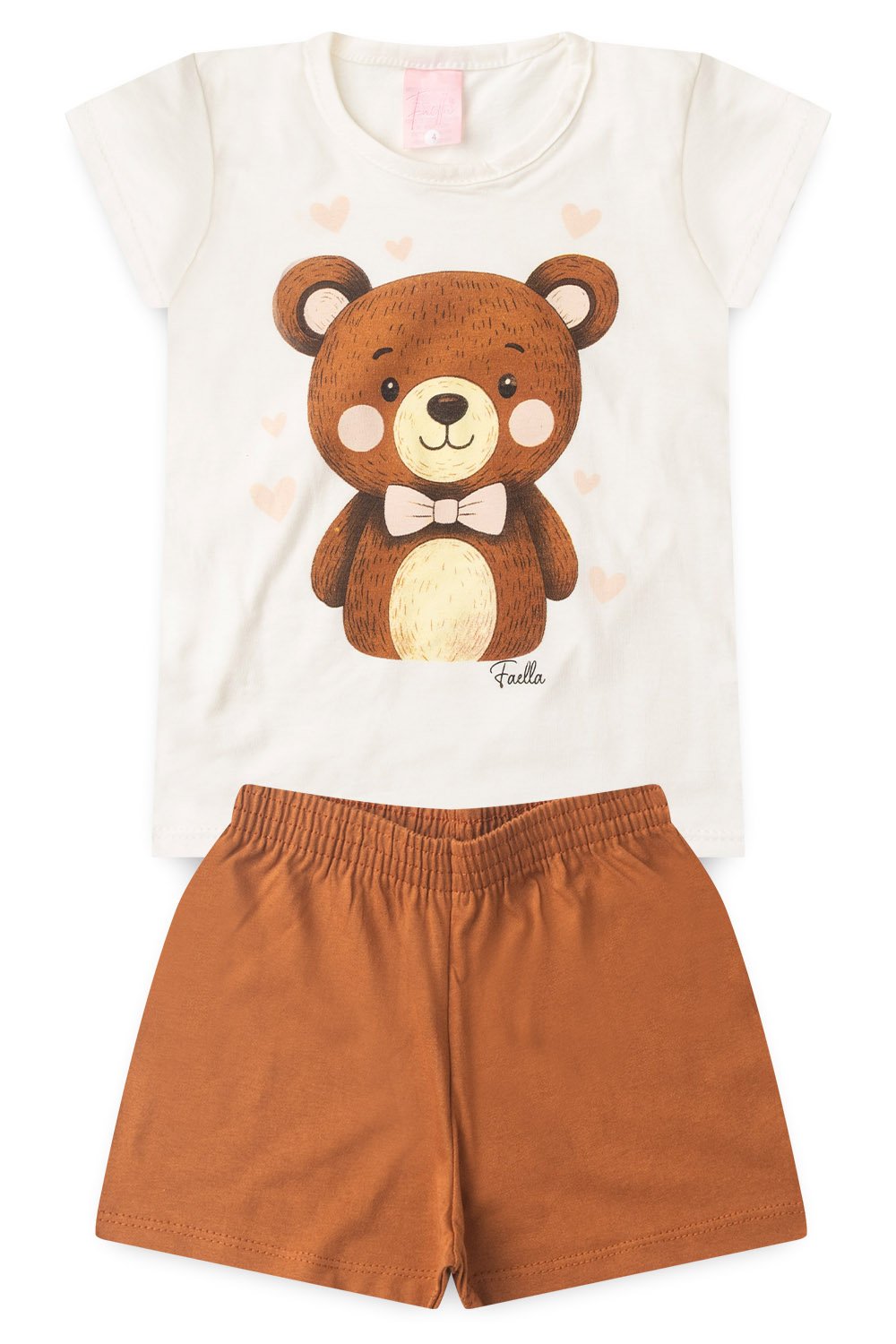 Conjunto Infantil Pijama Verão Feminino Ursinho - Off White