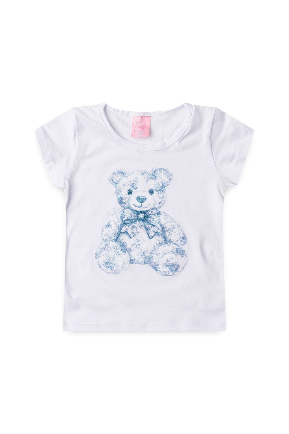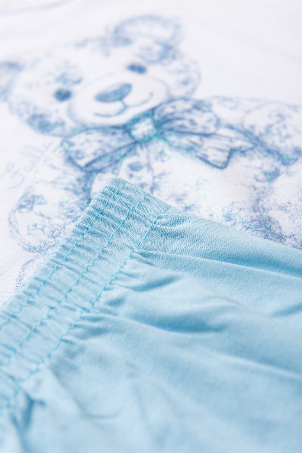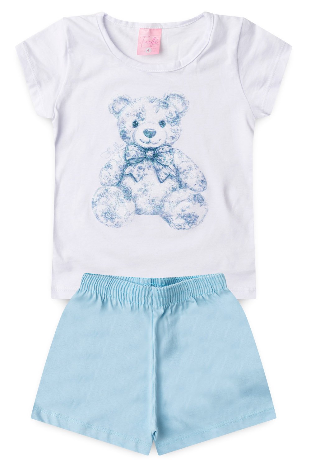 Conjunto Infantil Pijama Verão Feminino Ursinho com Gliter - Branco