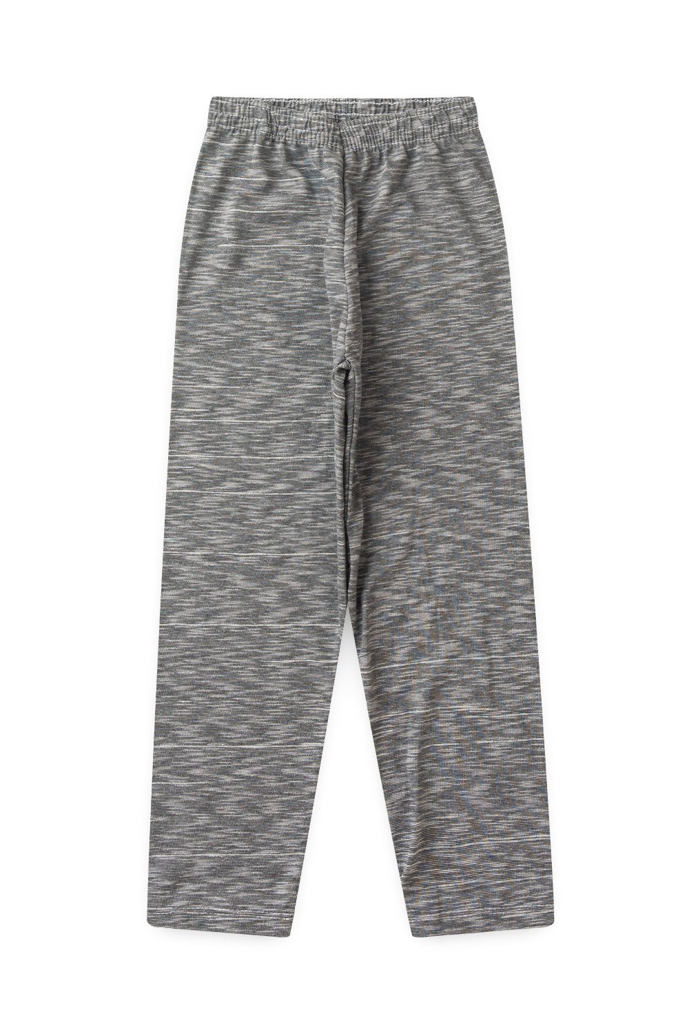 Calça em Meia Malha rajado na cor cinza, possui elástico no cós.