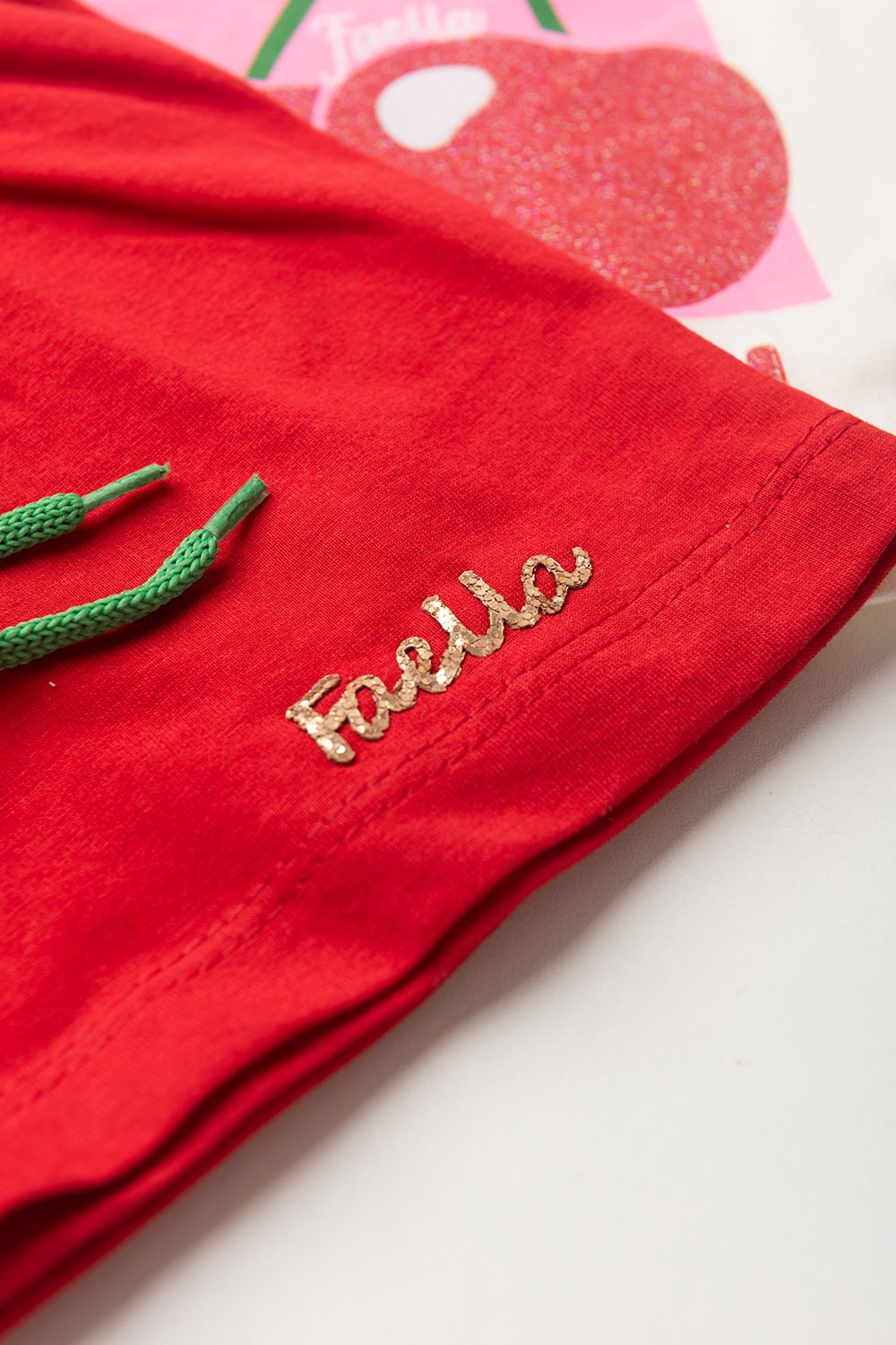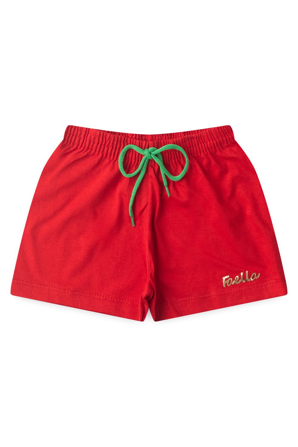 Shorts em meia malha na cor vermelha , possui plaquinha Faella em brilho dourado, elástico no cós, super confortável, peça ideal para os dias quentes de verão.