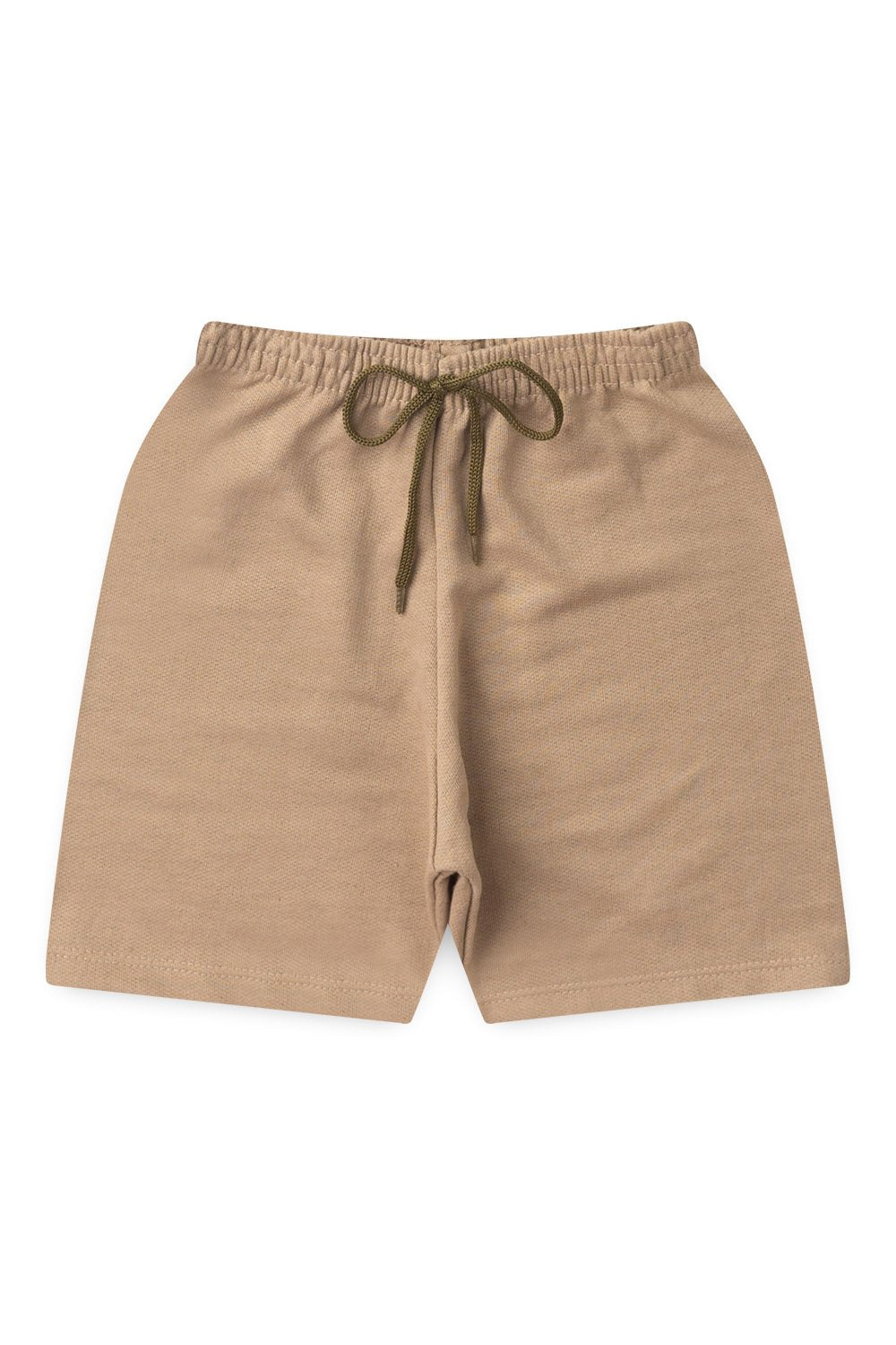 Bermuda em Moletinho na cor bege, possui elástico no cós e aplique de cordão.