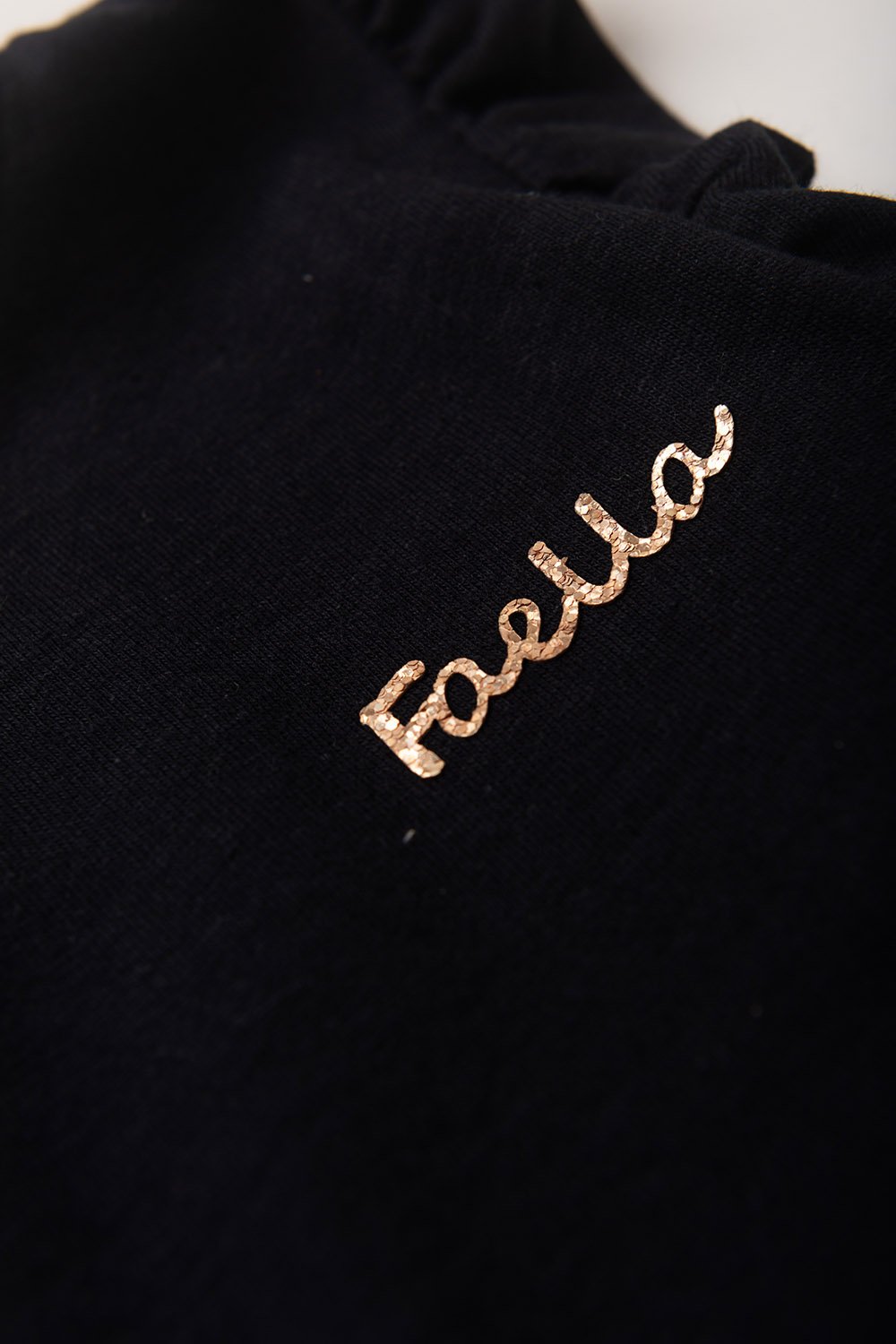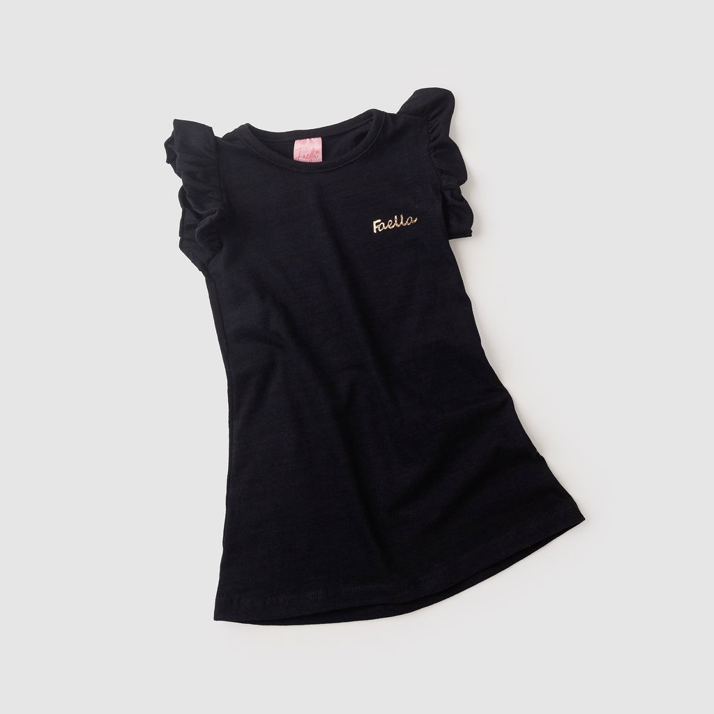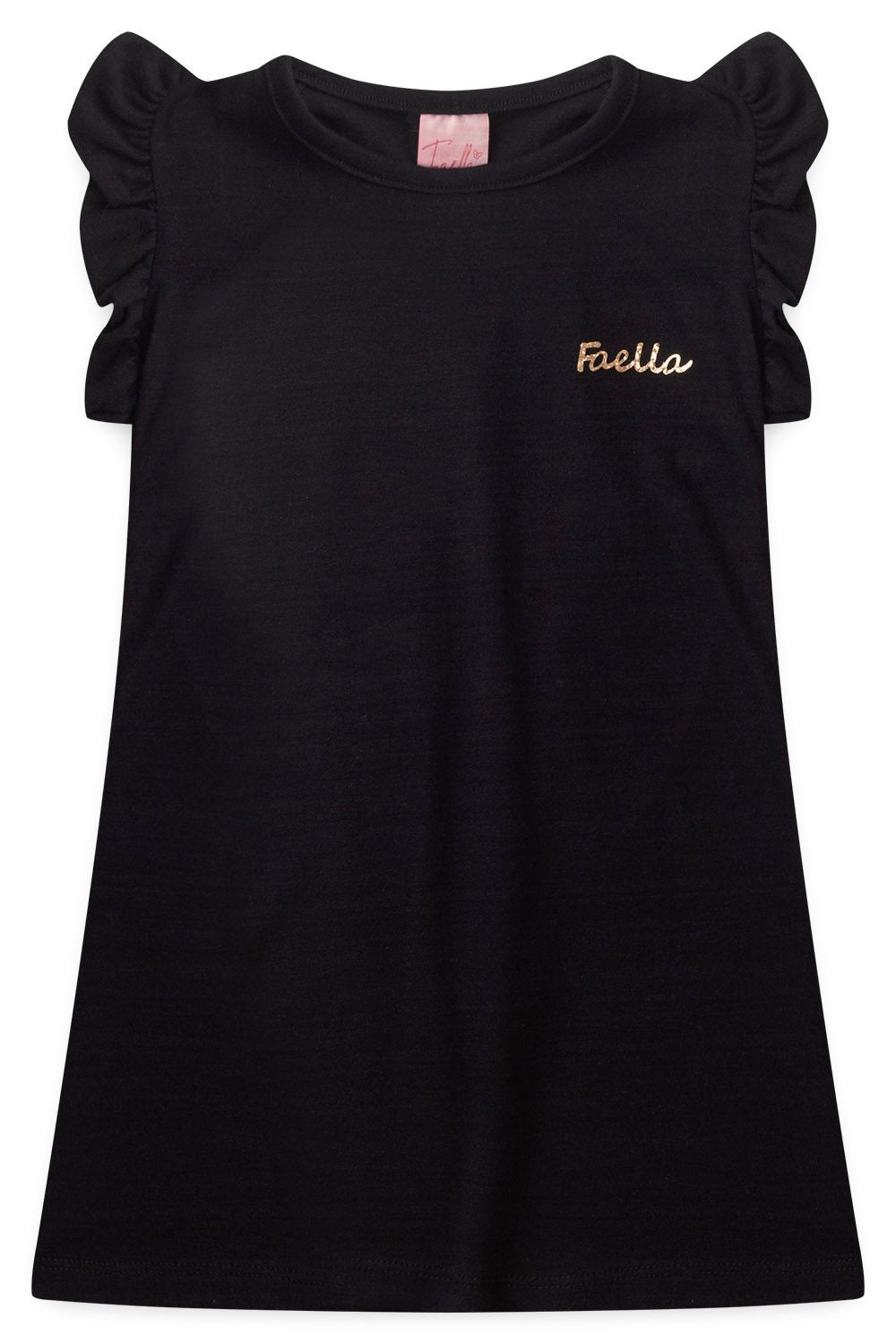 Vestido em meia malha na cor preta, possui mangas em babados e plaquinha faella, super estiloso.